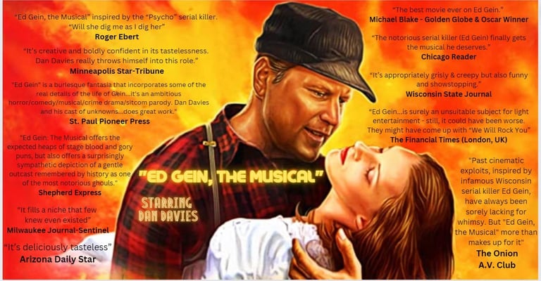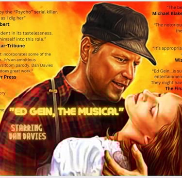 ED GEIN, THE MUSICAL - A Novel is a based on the cult classic film, "Ed Gein, the Musical". Written by critically acclaimed author Donna Francart, this unprecedented & remarkable book gives a unique perspective of the film while also delving into the depravity of this unsavory character. (Pub Date July 26th, 2023 - Renegade Press)